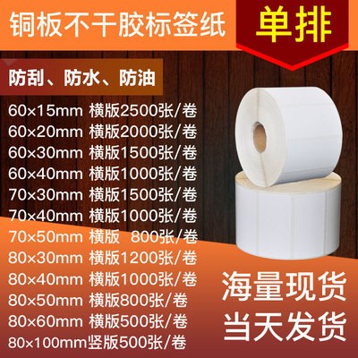 | 加工定制 | 是 | 品牌 | 馳怡 | 平板規格 | 銅版60X15mm單排橫版2500張/卷,銅版60X20mm單排橫版2000張/卷,銅版60X30mm單排橫版1500張/卷,銅版60X40mm單排橫版1000張/卷,銅版70X30mm單排橫版1500張/卷,銅版70X40mm單排橫版1000張/卷,銅版70X50mm單排橫版600張/卷,銅版紙80mm*30mm橫版1200張/卷,銅版80X40mm單排橫版1000張/卷,銅版紙80mm*50mm橫版800張/卷,銅版80X60mm單排橫版500張/卷,銅版80X100mm單排豎版500張/卷,40x20mm 雙排橫版4000張/卷,40x30mm 雙排橫版3000張/卷,40x60mm 雙排豎版1500張/卷,50x30mm 雙排橫版2500張/卷,50x40mm 雙排橫版2000張/卷 |