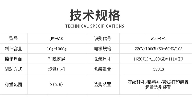 詳細(xì)信息 訂貨號(hào)A10-1-1 加工定制是 貨號(hào)A10-1-1 品牌豐川 型號(hào)JW-A10 產(chǎn)品別名多頭組合秤 類型電子定量秤 用途稱重 售后服務(wù)18039230515 是否跨境出口專供貨源否
