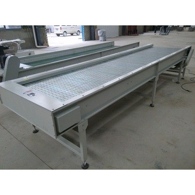 揚州市塑奇機械設(shè)備有限公司生產(chǎn)的鏈板輸送機以標(biāo)準(zhǔn)鏈板為承載面,由馬達減速機為動力傳動;我們可以通過多列鏈板并行,使鏈板輸送機做的很寬并形成差速,利用多列鏈板的速度差使多列輸送在無擠壓的情況下變?yōu)閱瘟休斔停部梢允箚瘟凶兂啥嗔胁⑿凶呔徛瑵M足大量供料的要求,我們可以將兩條鏈板輸送機的頭尾部做成重疊式的混合鏈?zhǔn)沟闷浚ü蓿w處于動態(tài)過度狀態(tài),使輸送線上不滯留物料,可以滿足空瓶以及實瓶壓力和無壓力輸送。