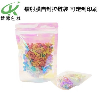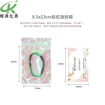 供應 加厚鐳射彩虹透明炫彩包裝袋 自封袋化妝品袋 耳環飾品袋